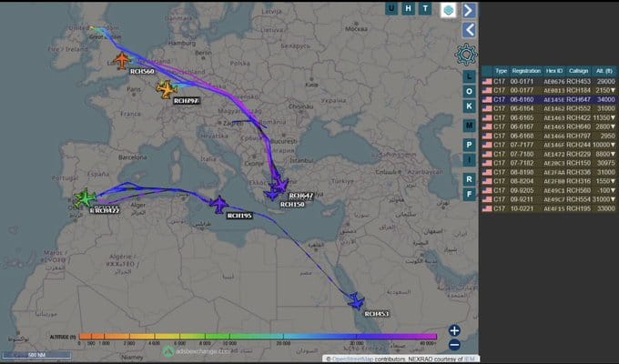 9 عمليات نقل تابعة للقوات الجوية الأمريكية من طراز C-17A توجهت إلى جيبوتي