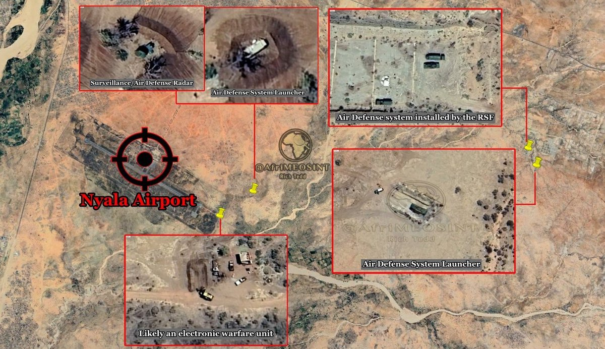 الدعم السريع يصنع الدفاع الجوي ولديه شركات تنافس لوكهيد مارتن وبالتأكيد لم تأته الدفاعات الجوية من السماءأفادت التقارير أن طائرات بدون طيار تابعة للقوات المسلحة السودانية قصفت مطار نيالا في جنوب دارفور. تُظهر صور الأقمار الصناعية أنظمة دفاع جوي ورادارات ووحدات حرب إلكترونية نشرتها قوات الدعم السريع في المنطقة، إلا أنه من غير الواضح ما إذا كانت قد استُهدفت بشكل مباشر.