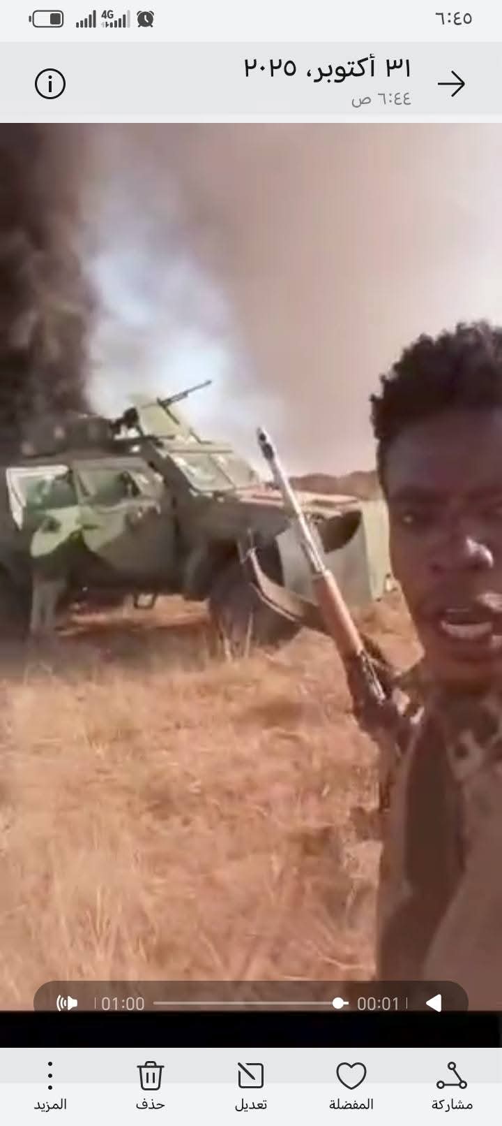 نشر مسلحون من قوات الدعم السريع المدعومة من الإمارات مقطع فيديو على مواقع التواصل الاجتماعي احتفالًا بمجزرة ارتكبوها بحق المدنيين في الفاشر، السودان.