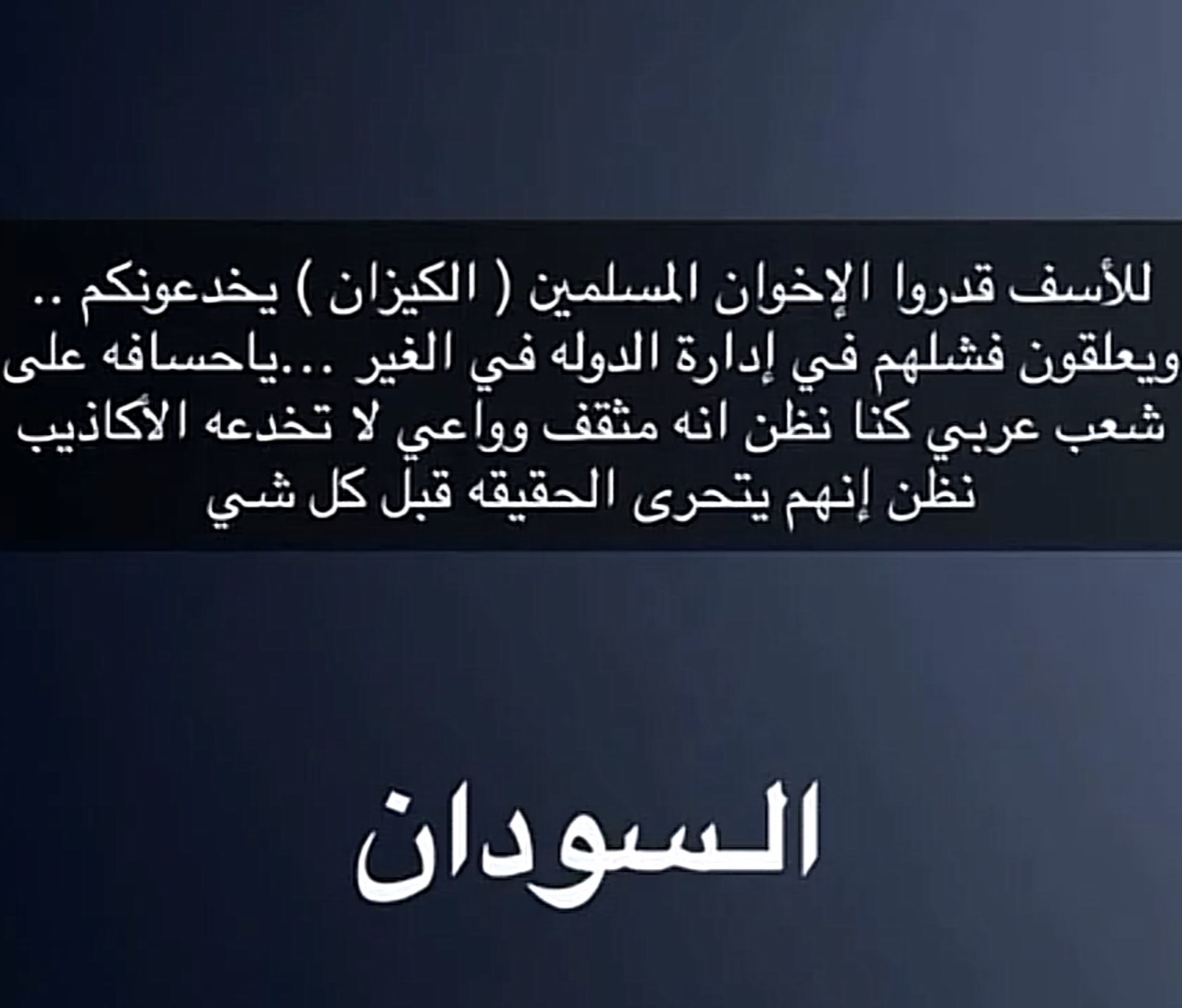 ويقول: "ارتكبت قوّات الدعم السريع والقوّات المسلحة السودانية فظائعَ بحقِّ المدنيين، إنَّ الداعمينَ الأجانب للطرفين ، بما في ذلك الإمارات ، وروسيا، وإيران، والصين، وعددٌ من حكوماتِ دولِ الجوار – غذّوا هذا الصراع واستفادوا منه ومنحوا الشرعيةَ للوحوشِ الذين يدمرون السودان."