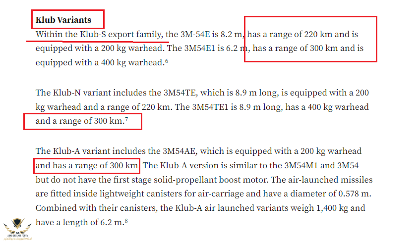 الأمر واضح ومحسوم حتى في مصدرهممقال مجلس الشيوخ الفرنسي يقول في الصفحة 100 ان "الغواصات مجهزة بصواريخ كاليبر ذو المدى النظري 1500 كم لكنه محدود بالنسبة للنسخ التصديرية."