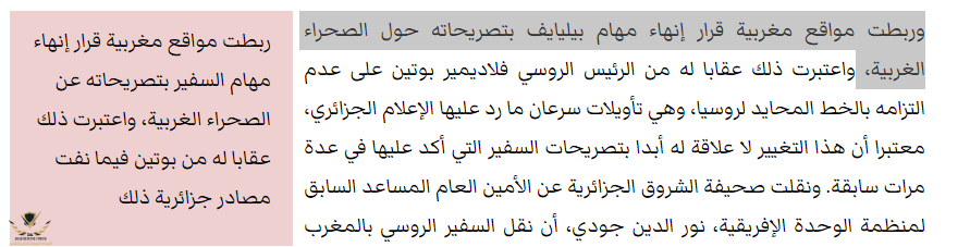 من نفس مصدرك المضحكنفس الشيء حصل مع السفير الروسي في الجزائر