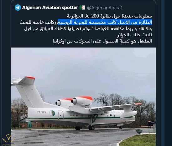 علاش راك تكذب احشم على وجهكطائرة بيريف الوحيدة التي وفرتها لكم روسيا هي طائرة مستعملة كانت سابقا للبحرية الروسية