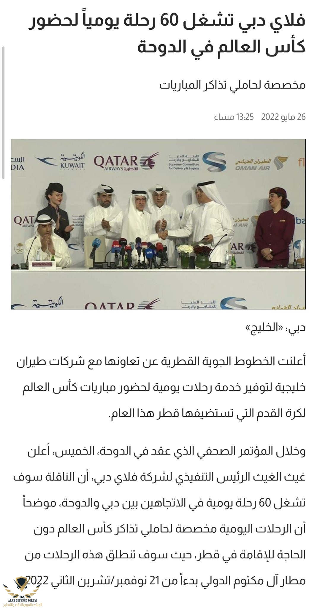 عشان ماتتاثر الخطوط القطريه خطوط الامارات ماشاركت بس شاركت فلاي دبي الي تتبع حكومه الامارات ب60 رحلةمشاهدة المرفق 578801![]()