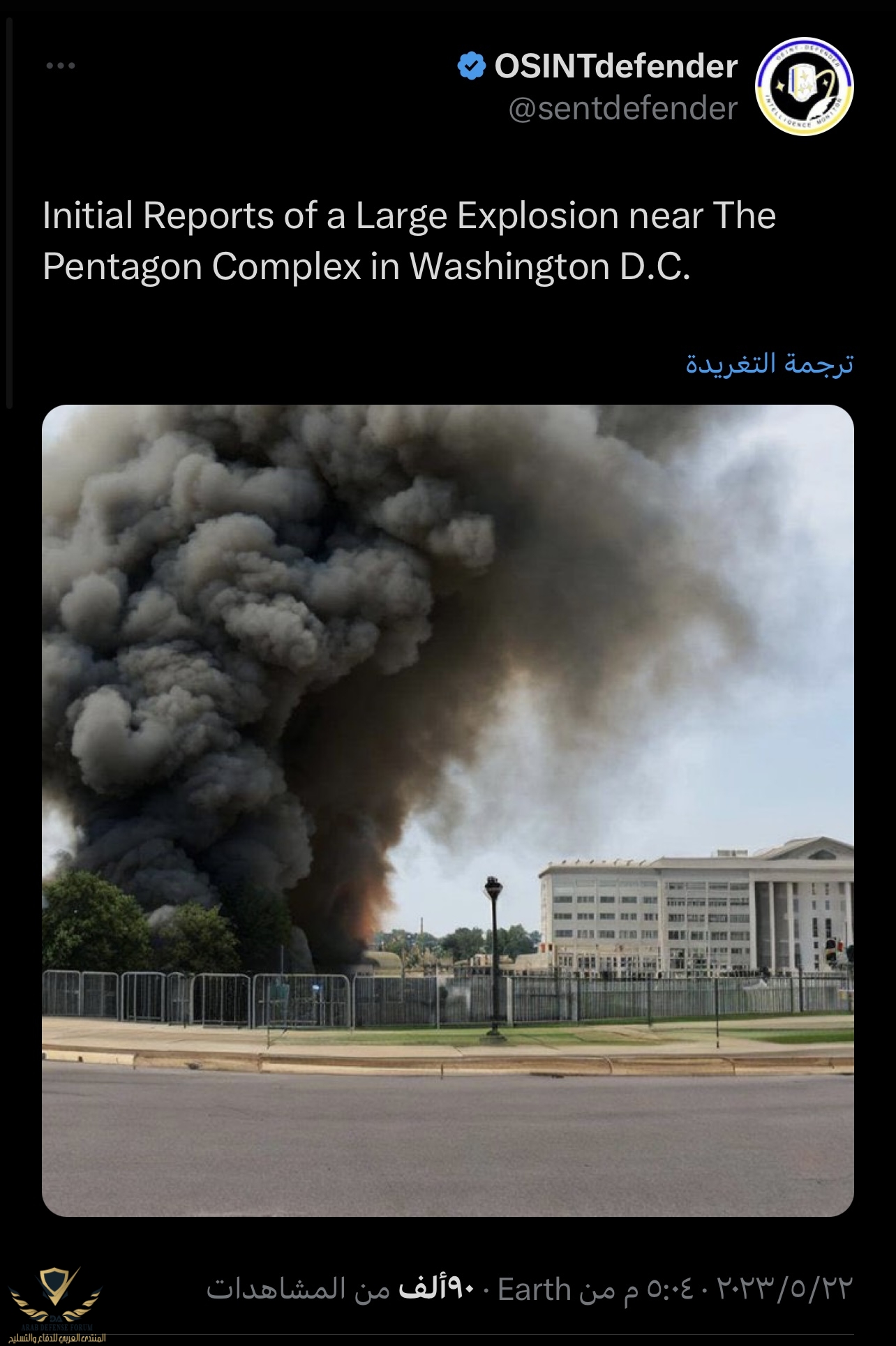 تقارير أولية عن إنفجار كبير بالقرب من مبنى البنتاغون بواشنطن