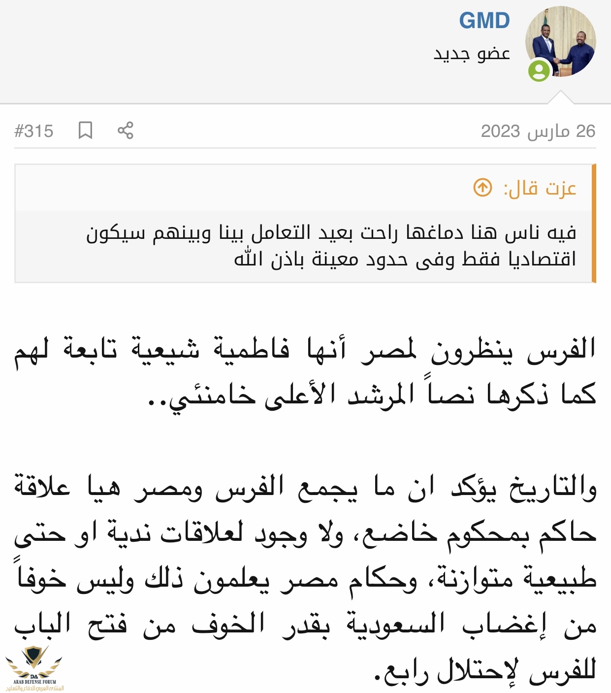 هذه اللهجة الفوقية اعتادت ايران على التعامل بها دوماً مع مصر، وذكرت اسبابها بردين سابقة لي..