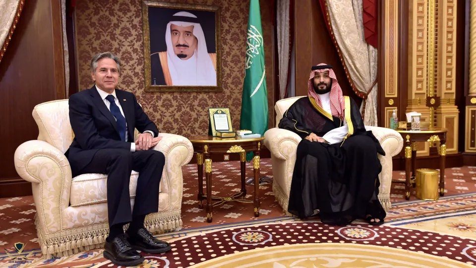 ‎قال مسؤولون أمريكيون إن بلينكين التقى ولي العهد، المعروف أيضًا باسم MBS، لمدة ساعة واربعين دقيقة يوم الثلاثاء خلال هذه الزيارة التي استمرت ثلاثة أيام للمملكة، وأجرى الرجلان محادثة "صريحة ومفتوحة" تضمنت جهود الولايات المتحدة للتوسط في التطبيع بين إسرائيل والمملكة العربية السعودية، والصراع في اليمن، وحقوق الإنسان والقتال في السودان.