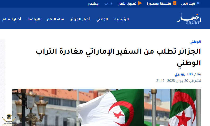 قبل ساعتين قامت وسائل اعلام جزائرية رسمية باعلان خبر عن قطع العلاقات مع الامارات و طرد السفير الاماراتي بتهمة التجسس لصالح الموساد