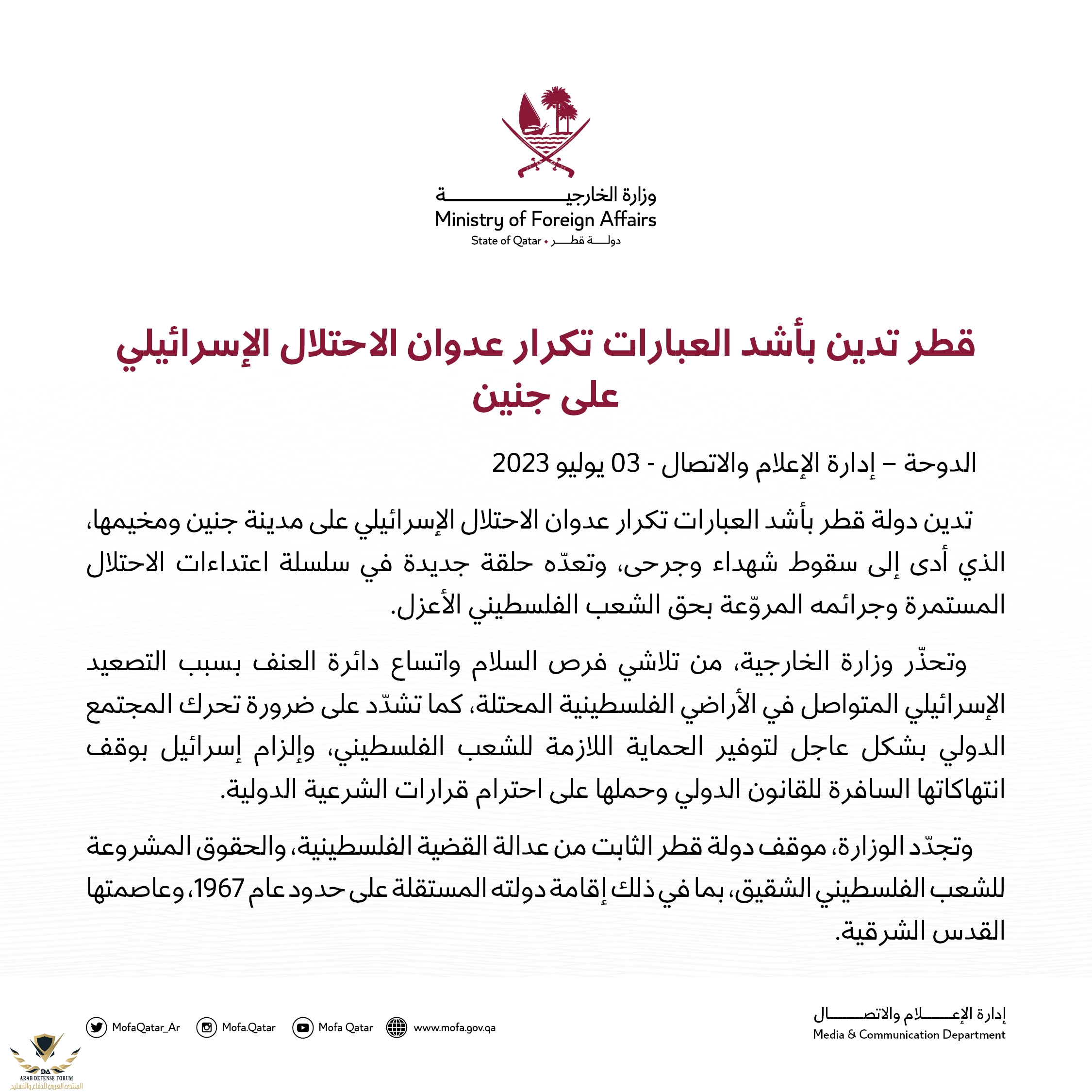 نبارك لأهلنا ولمقاومتنا في جنين هذا النصر المبارك ونشكر كل من دعمنا ولو بكلمه .