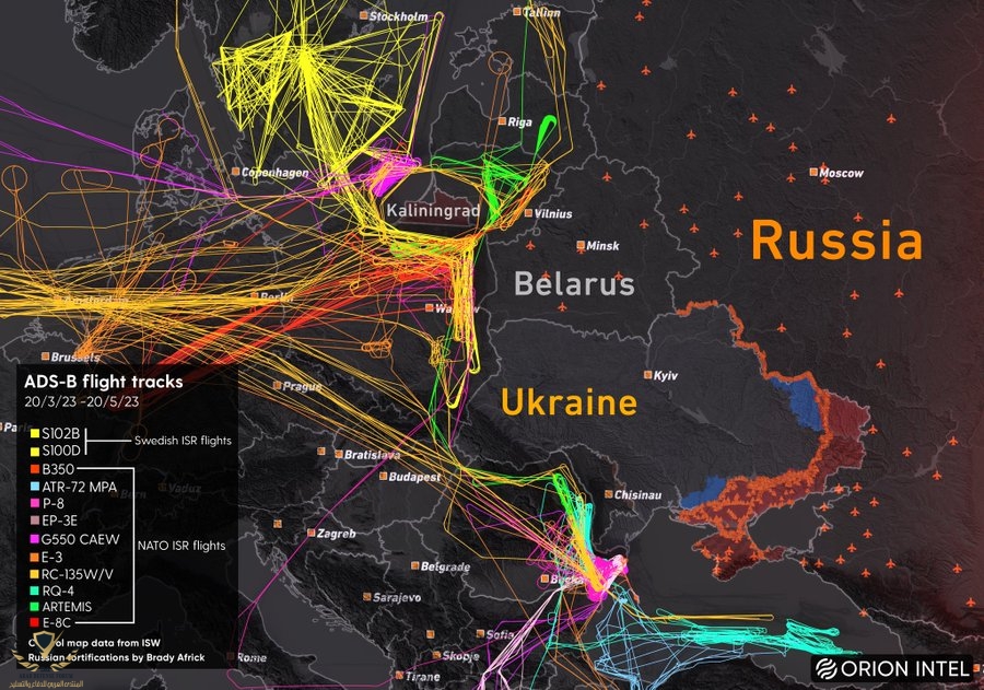 مشاهدة المرفق 604032تأمل الصوره جيدا وكمية وأنواع وسائل الإستطلاع المستخدمه لرصد التحركات الروسيه و ستدرك ان الناتو والسويد وغيرهم دخلو الحرب ضد روسيا بطريقه مباشره