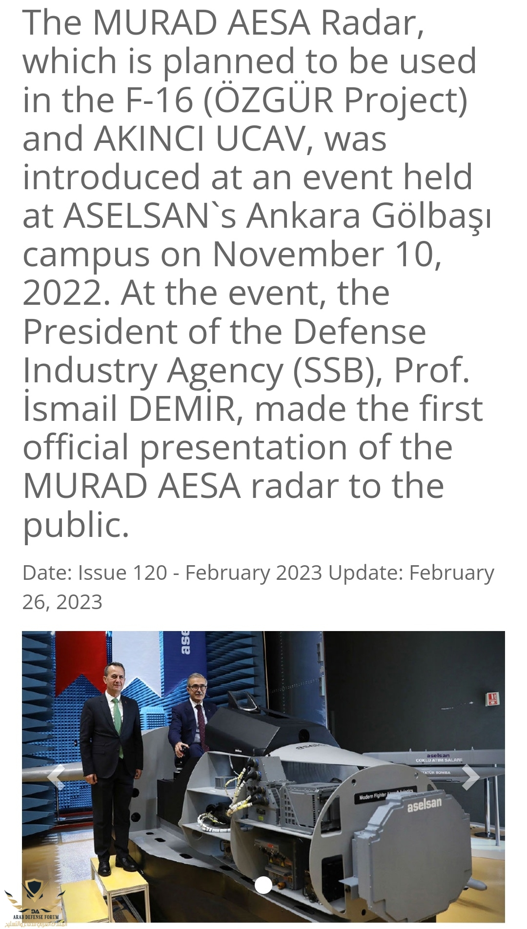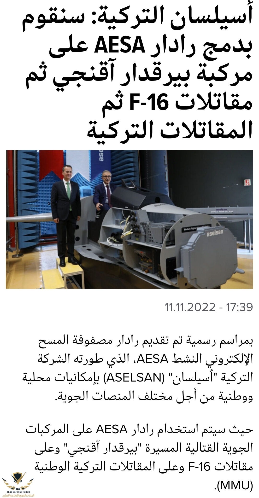 الرادار مراد : مازال مجرد كلام وخطط ولم ينتج أرض الواقع وكل المعروض هو بروتايب للعرض فقط الا اذا كان لديك صوره لهذا الرادار تم تركيبه على الطائره ولديك أيضا مصدر بعدد module في الرادار ومادة تصنيعها!!!!! لكي نستفيدوكذلك رادار الايسا الخاص بالاف ١٦ المسمي مراد عدد الموديولز عليه محتلفه كليا واكبر من رادار الاكنجي
