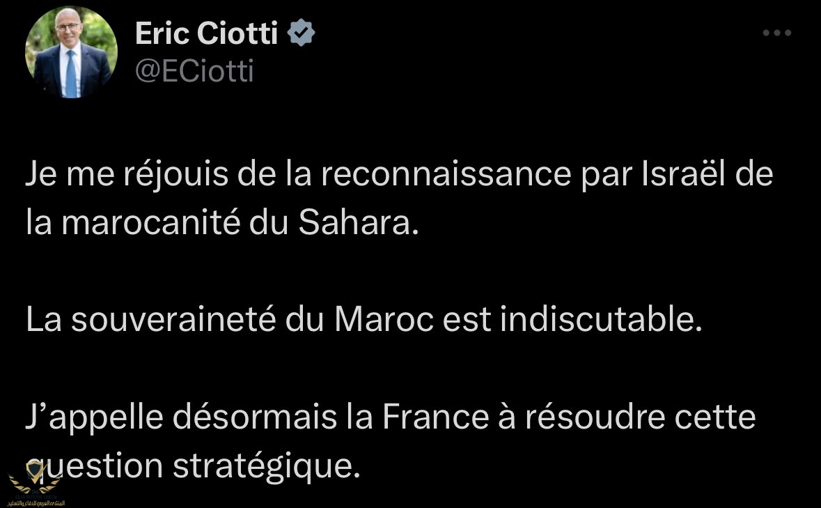 صديقي ملف الصحراء حسم منذ زمن بعيد بالفعل بقوة الحديد و النار اولا و باقبار تقرير المصير المزعوم ثانيا ،تبقى التسوية السياسية و المغرب ليس مستعجل عليها ،ما يحصل من اعترافات هي تحصيل حاصل و لا تقدم و لا تؤخر و لن تغير من الوضع على الارض في شئ .ربما