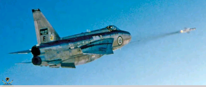مقاتلة Lightning F.53 اثناء اطلاقها لصاروخ Firestreak على هدف تدريبي