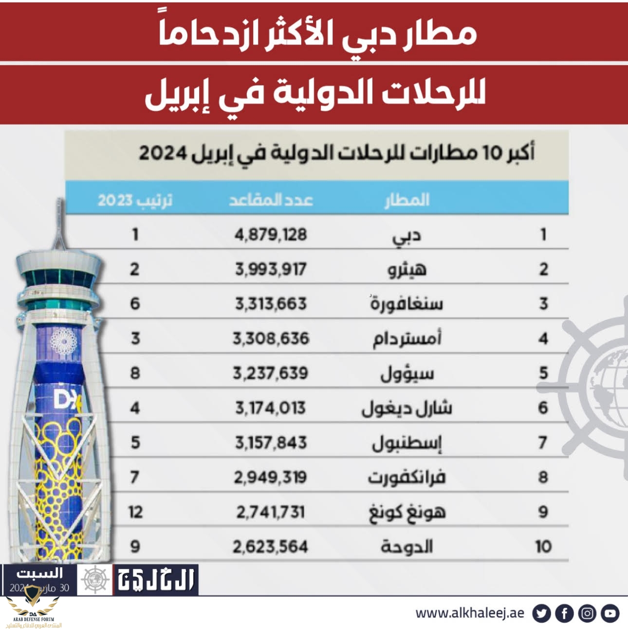 وكان مطار دبي الدولي استقبل 21 مليوناً و256 ألفاً و489 مسافراً خلال الربع الأول من العام الجاري