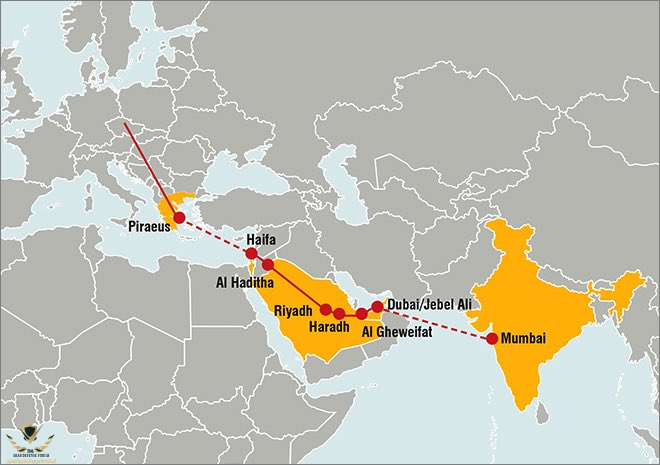 الممر المائي هي فكره اماراتيه قديمه تربط الهند بميناء الفجيره .. الدبلوماسيه الاماراتيه اجيرت الهند على تفعيلها وذلك ذكاء وحنكة الامارات بعد دراسة طريق الحرير والضغط على الصين واعادة دراسة طريق الحرير وجعل له طريق في الامارات لهذا نجد تشجيع الغرب لكسب الخليج لصالحهم من خلال طريق الهند..
