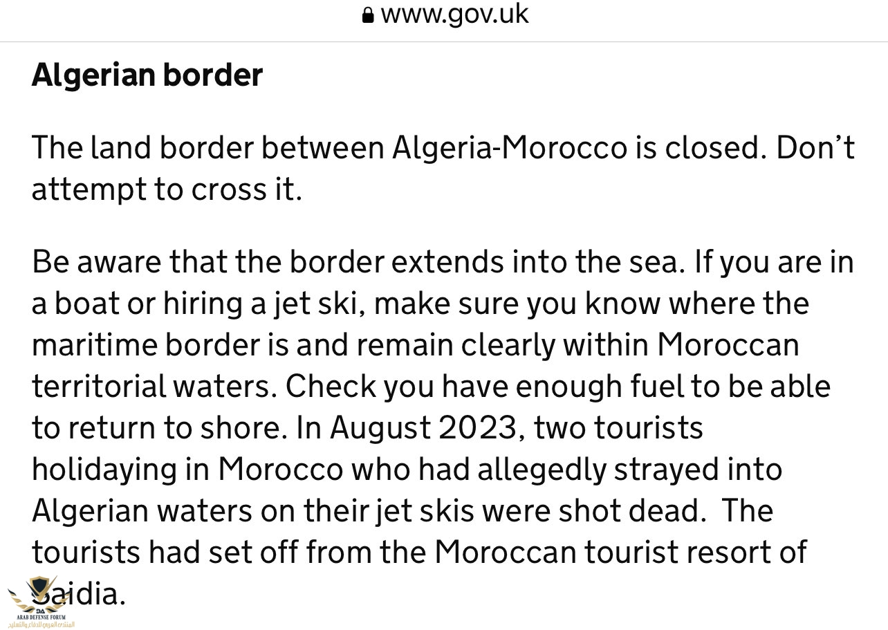 " الحدود البرية بين الجزائر والمغرب مغلقة. لا تحاول عبورها. و انتبه إلى أن الحدود تمتد إلى البحر.