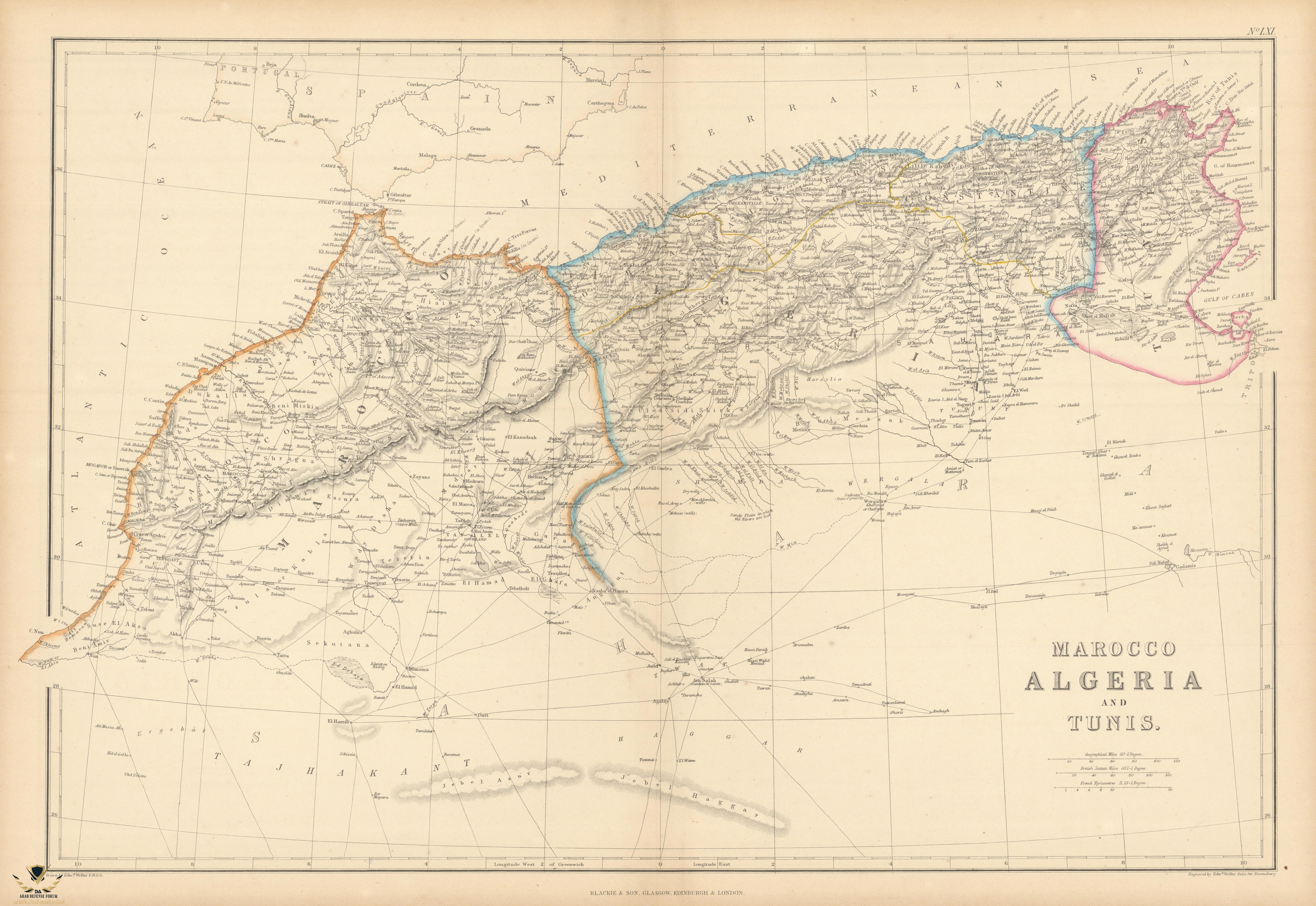 في فصل نوميديا (الجزائر قديما) يقول ان حدها الشمالي هو البحر المتوسط وحدها الجنوبي هو الجيتور ومن الغرب يحدها نهر ملوية الذي يفصلها عن موريتانيا ومن الشرق توسكا والذي هو الحد مع افريكامشاهدة المرفق 618418