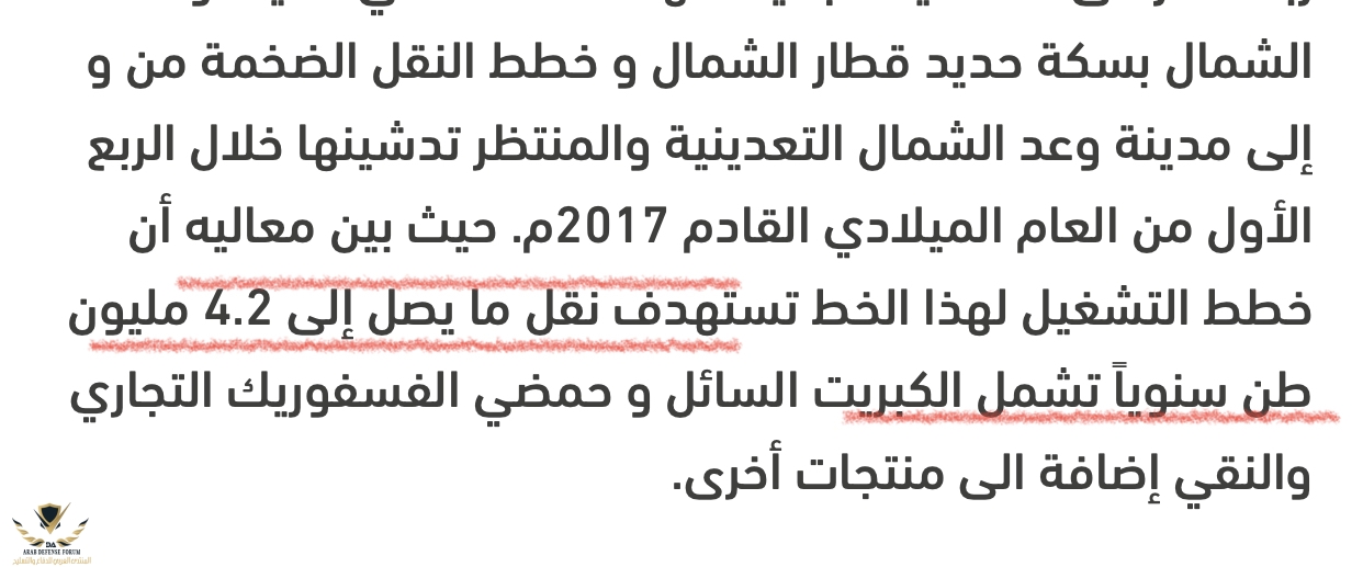 ما اظن لأن شركة سار في قطار الشمال اعتمدت على طول القطار الواحد إلى ما يزيد على 3,5 كم وبعدد تقريبي لكل قطار 110 عربات بقدرة تم من خلالها نقل أكثر من 60 مليون طن من المعادن