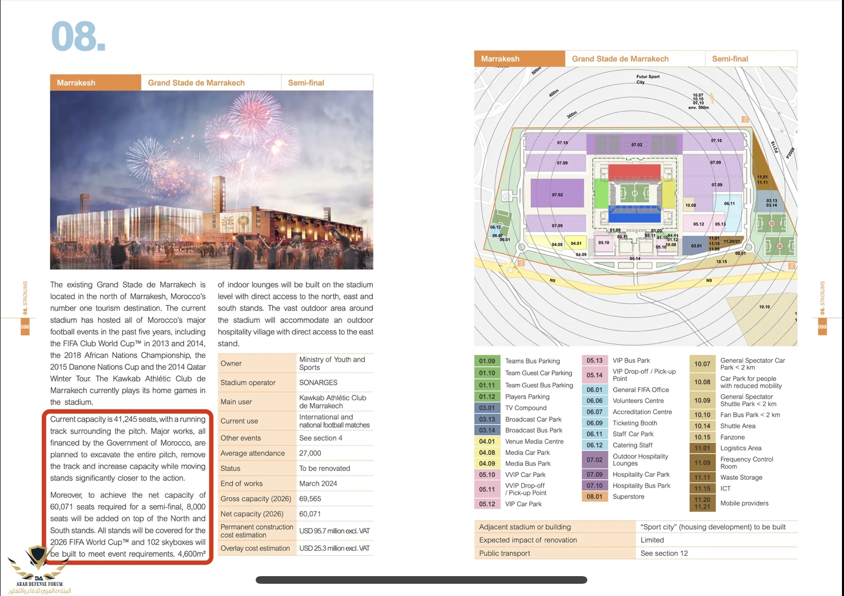 هذه خطة توسعة ملعب مراكش التي وضعتها الجامعة في ترشيح 2026. اضافة طابق في المنطقة الشمالية والجنوبية للرفع من الطاقة الاستيعابية الى 60.000 بدل 41,000 حاليا.