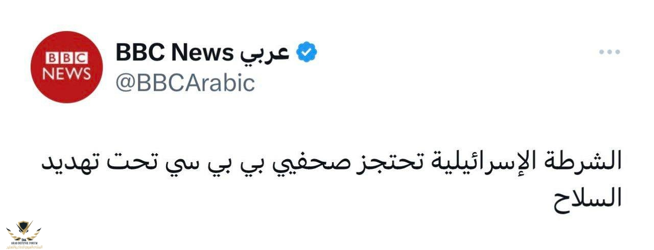 تغريدة عاجلة من شبكة بي بي سي تتحدث عن احتجاز شرطة الاحتلال لعدد من الصحفيين في الشبكة تحت تهديد السلاح..