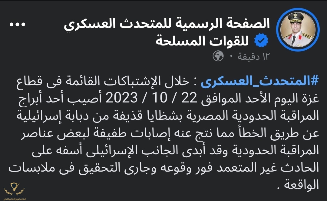 برج مراقبة معروف انه مصري وفي حدود مصر فكيف يمكن ان تصيبه دبابة بالخطئ