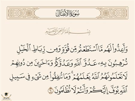امرنا الله بالاعداد الحقيقي للقوة ( السلاح بتقنياته وادوات التنقل اكان خيل قديما او غيره ) وامرنا بالانفاق لهذا الاعداد