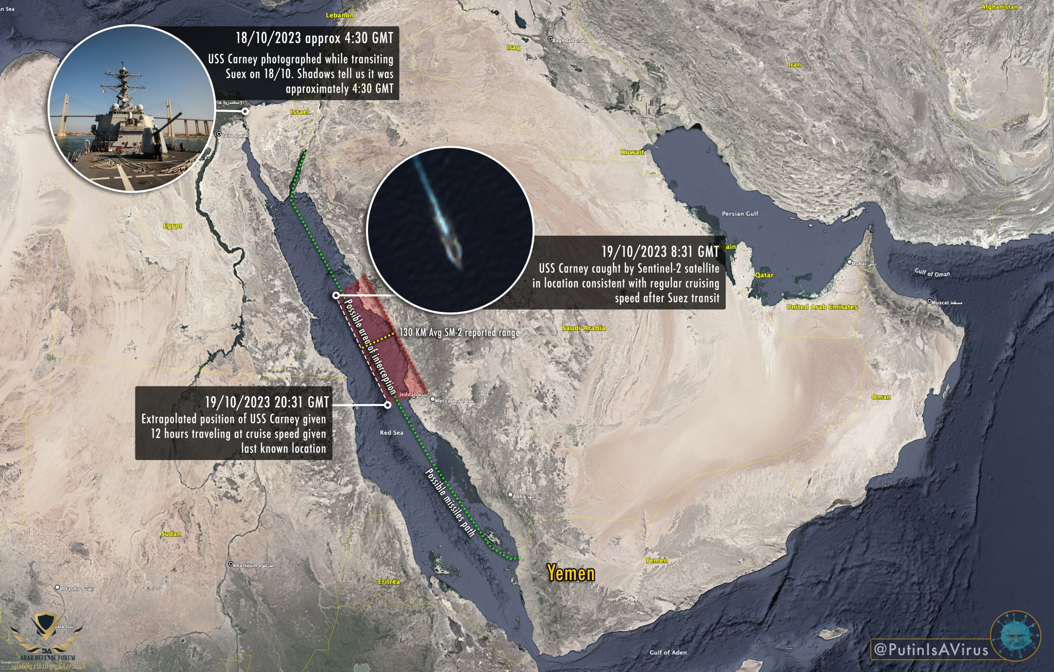 السفينة الامريكية كانت فوق و بعيدة عن اليمن و هاد يعني انو صواريخ الكروز كانت فعلا ماشية بطريق البحر .