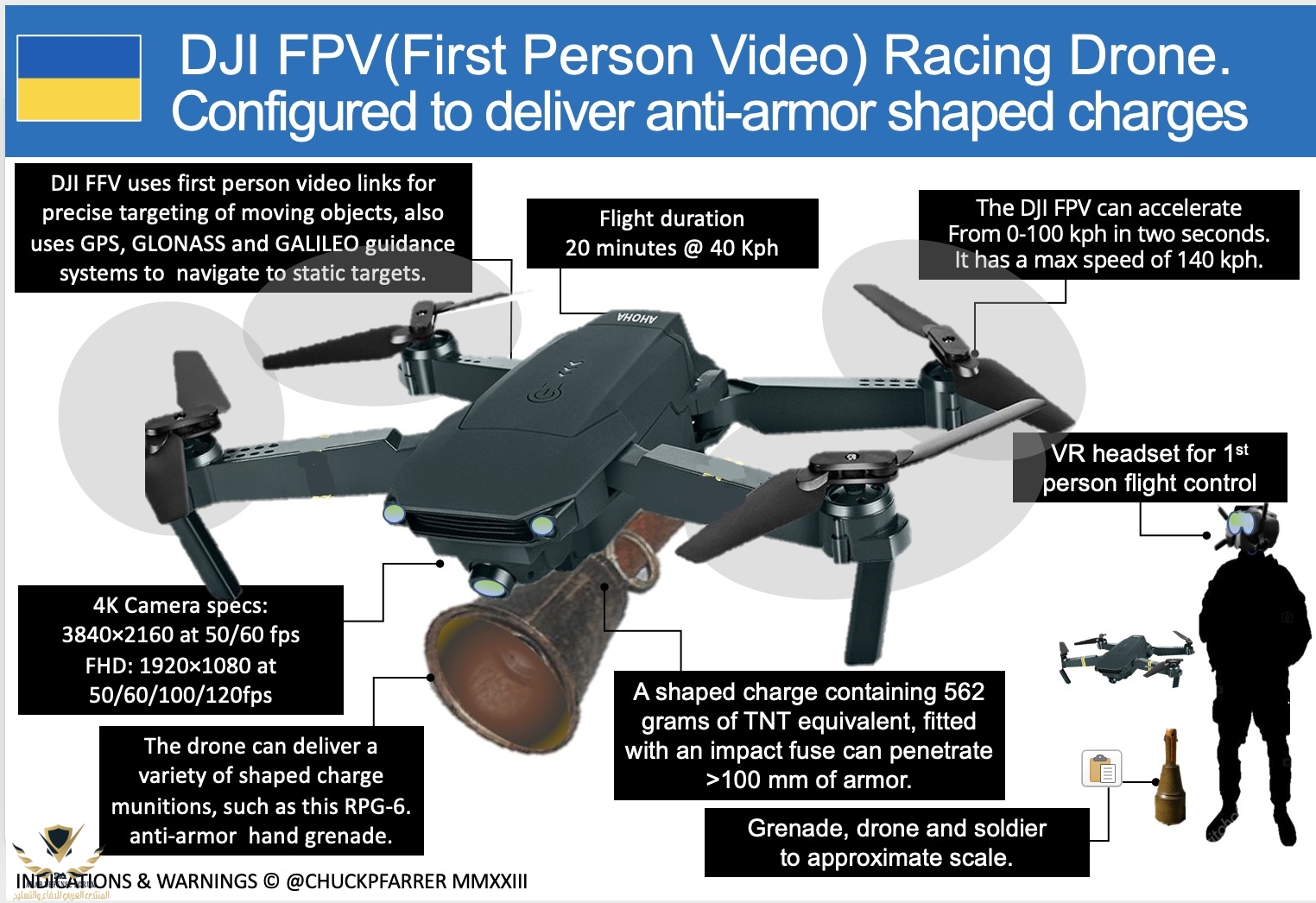لعشاق اللاعب الجديد Armed Commercial FPV Drone بالحرب الحديثه ومن مخرجات الحرب الاوكرانيه الروسيه ... تكلفه ماديه وتصنيعيه متواضعه والنتيجه كاريثيه على مدرعات باهظة الثمن بكافة انواعها خاصة اذا استهدفت في نقاط ضعفها .... سرعه، دقه، مباغته، صعوبة الكشف، ذخائر متنوعه من ضمنها الترادفي مضاد للافراد، اسراب ..... فديوات التدمير الموثقه كثيره على النت لمن يريد الاطلاع...