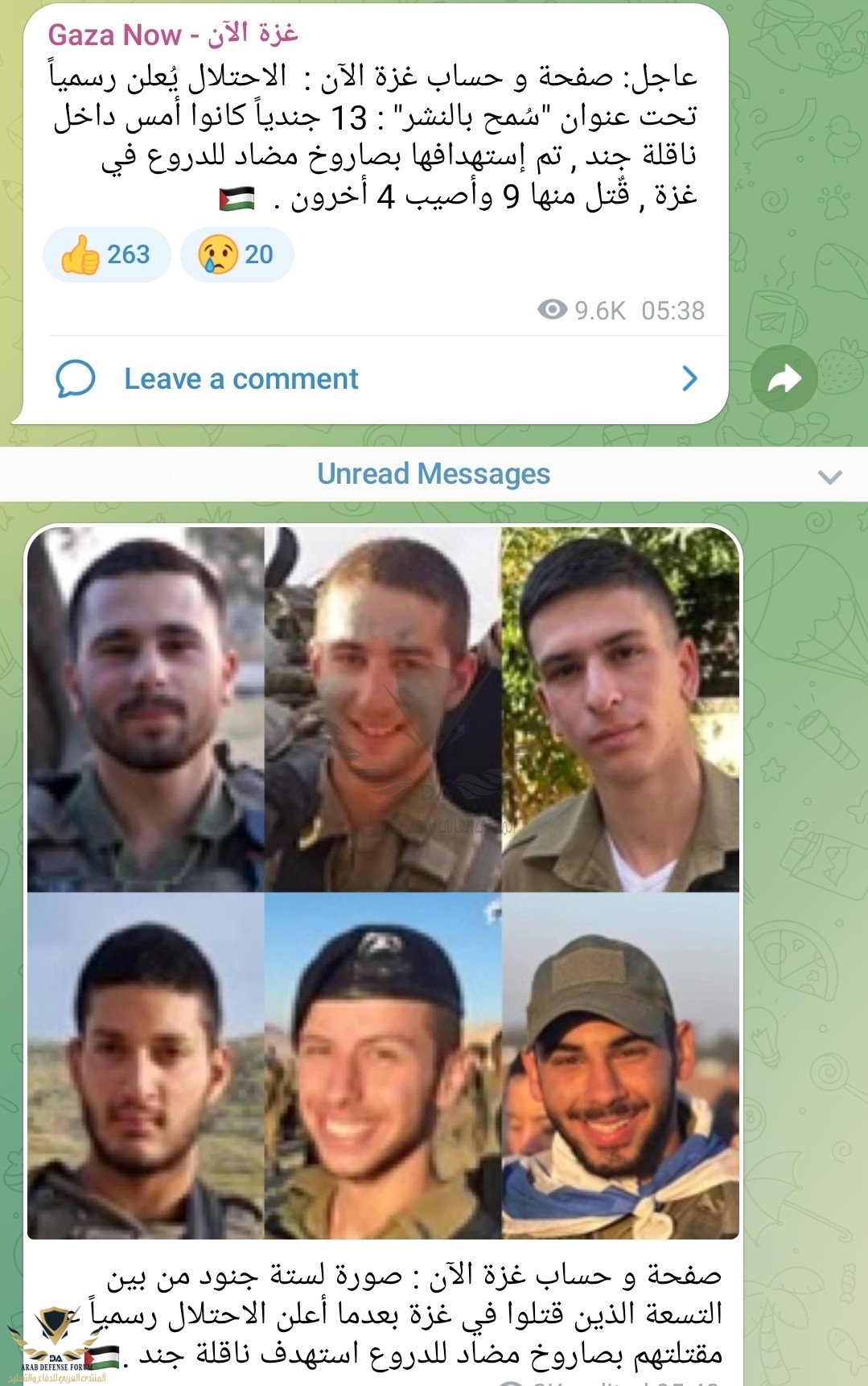 في هذا الصباح المبارك وهذا الخبر الجميل الذي أصباحنا عليه لايسعني الا أن أجدد شكري للجندي الاسرائيلي الذي كان يسوق مدرعة البانثر (بعد أن شكرته أول مرة عند اطلاق الفيديو منذ يومين وتوقعت خسائر ثقيلة بسبب مناورته)أجدد شكري له فلولا ردة فعله السريعة و قيامه بادارة عجلة القيادة معتقدا أن بامكانه مناورة الصاروخ لكنه جعل الصاروخ يصيب المدرعة في الوسط تماما. وأتمنى له السلامة وألا يكون بين القتلى حتى يعود لقيادة المدرعات مرة أخرى.