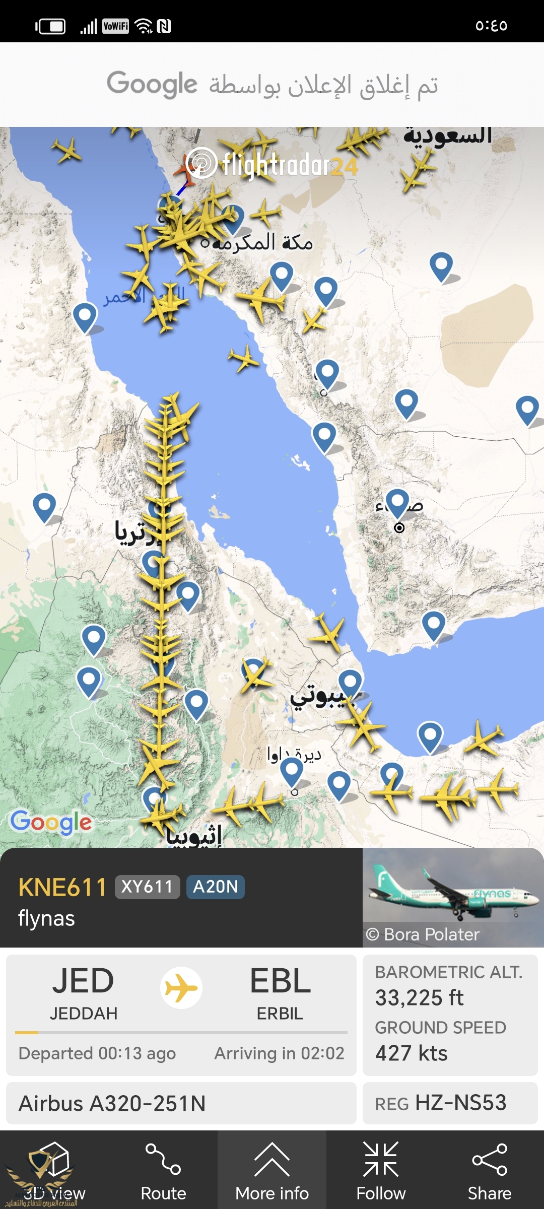الطائرات كلها من بعد جدة متجهة جهة اثيوبيا ومتجنبة جنوب البحر الأحمرماني شايف شي وضح