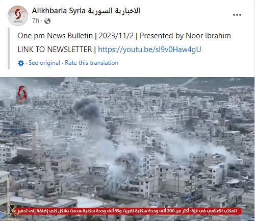 الاخبارية السورية تستخدم صور قصف النظام السوري على مخيم اليرموك (الفلسطيني) لوصف دمار غزة