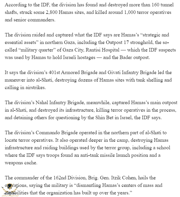غير صحيح ، رحم الله الشهداء ليلة امس فقط 1000 قتيل من حماس في مخيم الشاطىء خلال معركة استمرت 9 ساعات