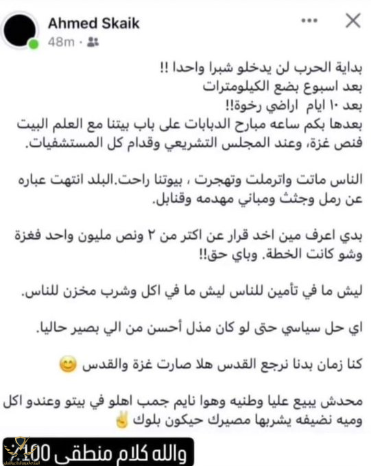 ربما الذي تخاطبه اما منهم اويخدم نفس الفكرة بجهلاخوي العزيز خذ بالك لا تصدق اي شي غير معروف.لان الناشر قد يكون من الموساد ويبحث عن الفتنه.فهو هدفه يلعن الفلسطيني السعودي لابعاد السعوديه عن فلسطين.وكره السعودي للفلسطيني هذا هدف استراتيجي بالنسبه للصهيونيه العالميه.