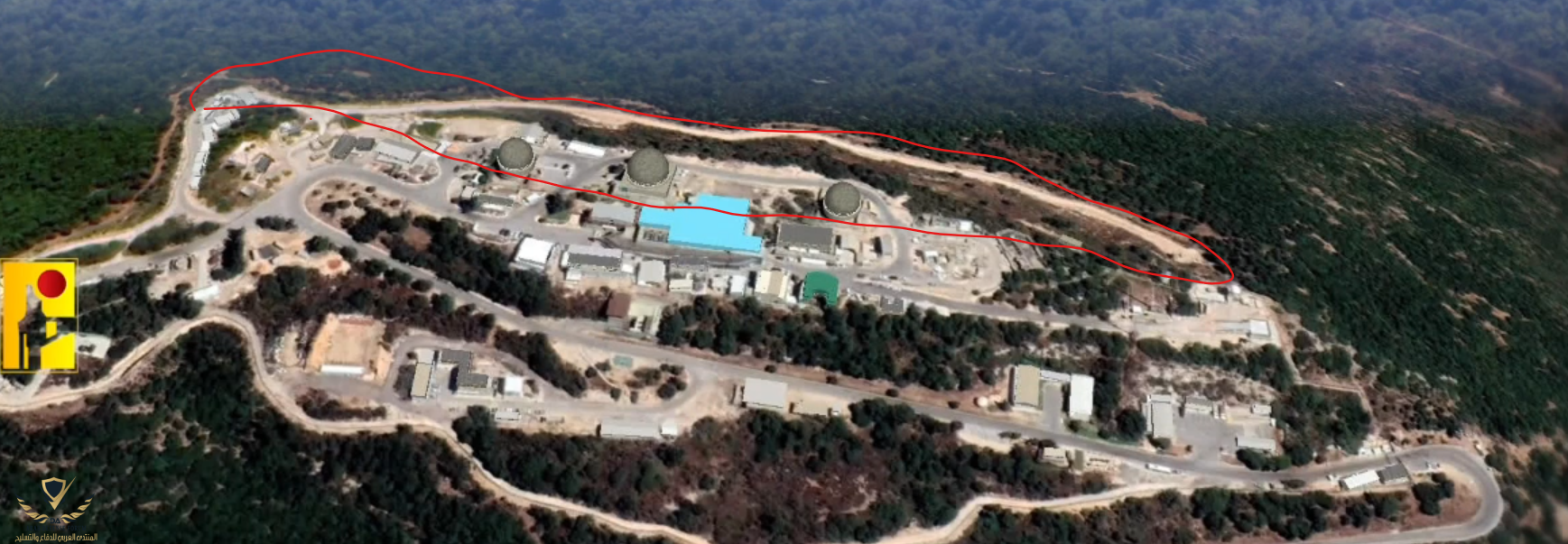 هذه صورة القاعدة من فيديو الحزب الاستهدافات (من الفيديو نفسه) كانت على الخط الامامي المظلل بالاحمر بينما القاعدة (من فيديو الحزب نفسه ايضا) مساحتها 160 الف متر مربع ...