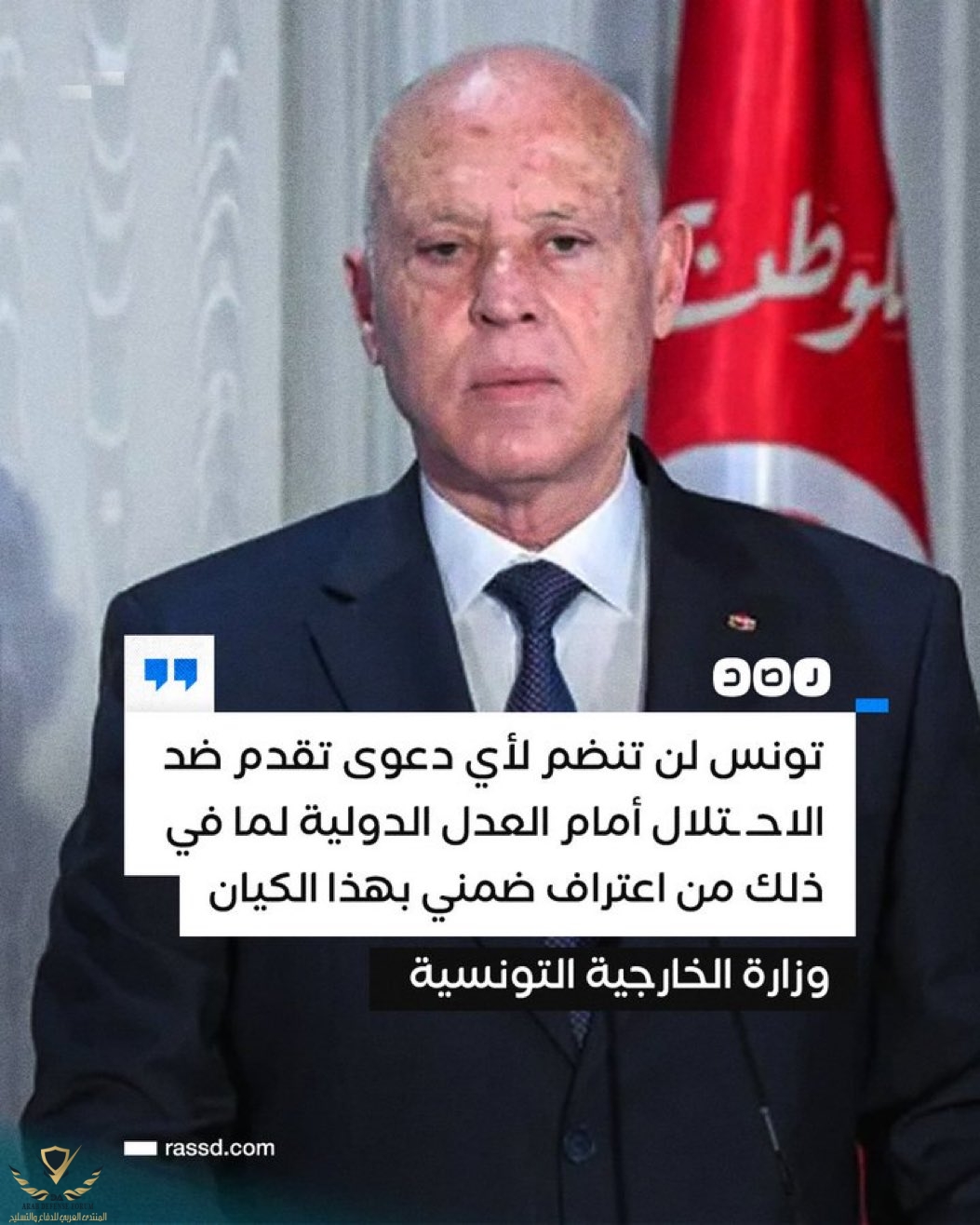 إن تونس لا يمكنها تقديم أي تنازل عن موقفها الثابت من القضية الأم ولن تتزحزح عنه قيد أنملة وتبقى منفتحة وداعمة للمبادرات والدعاوى والإعلانات التي لا يتم فيها تأريخ القضية ابتداء من السابع من أكتوبر 2023 أو المساواة بين الضحية والجلاد أو إدانة المقاومة. كما أنها لن تنضم لأي دعوى تقدم ضد الكيان المحتل أمام محكمة العدل الدولية لما في ذلك من اعتراف ضمني بهذا الكيان.