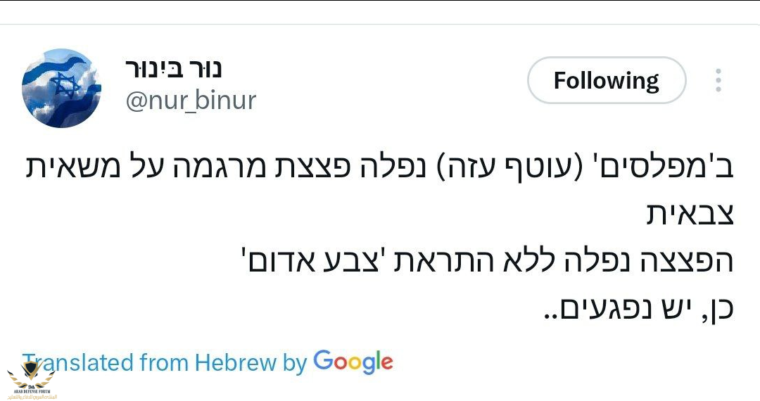 اتضح ان شاحنة عسكرية اسرائيلية محملة بالذخيرة اعترضت بنجاح قذيفة هاون فلسطينية في غلاف غزة.