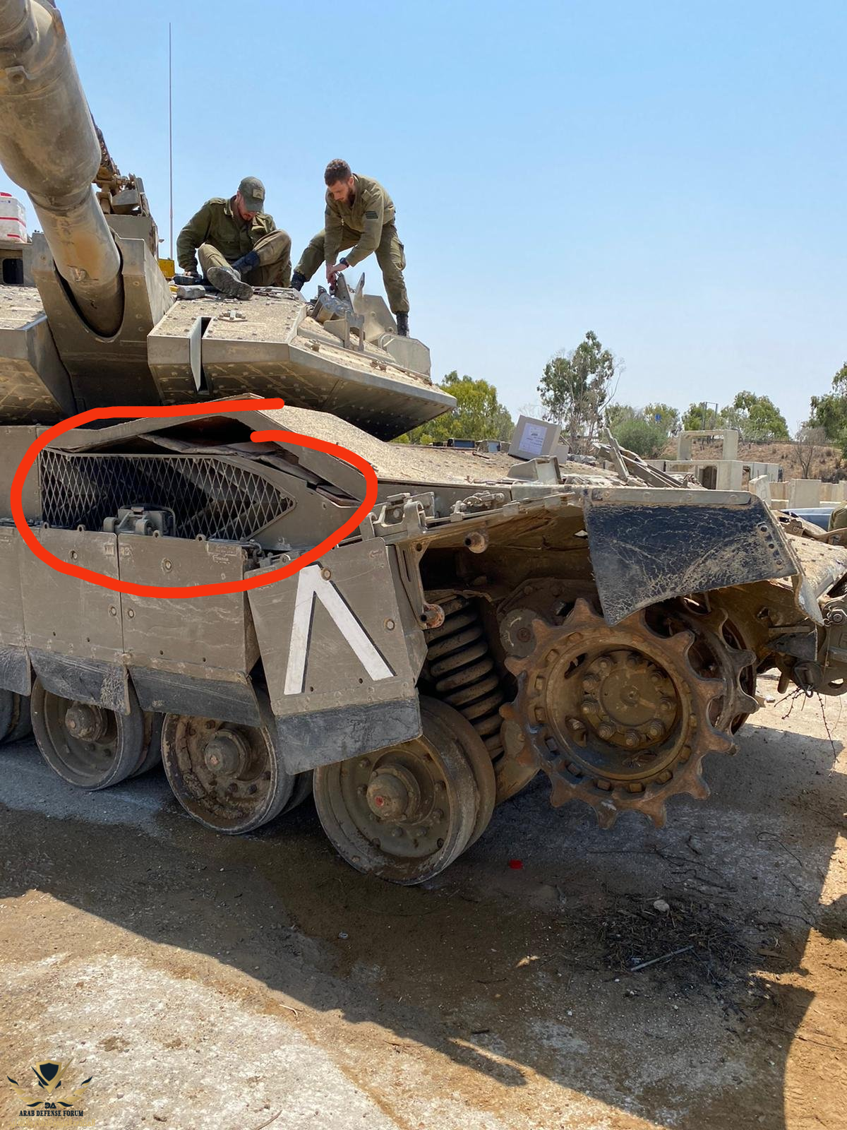 يرصد مقاتلوا القسام دبابة Merkava Mk.5 مزوة بنظام الحماية النشط Trophy APS (لا فائدة له في هذه الحالة) وهي أحدث جيل من أجيال الدبابات الإسرائيلية وهي مزودة ببصريات متطورة ومتزودة بنظام Iron Vision وهو نظام رؤية بانورامي 360 درجة حول الدبابة ومزودة بأنظمة الذكاء الإصطناعي AI.