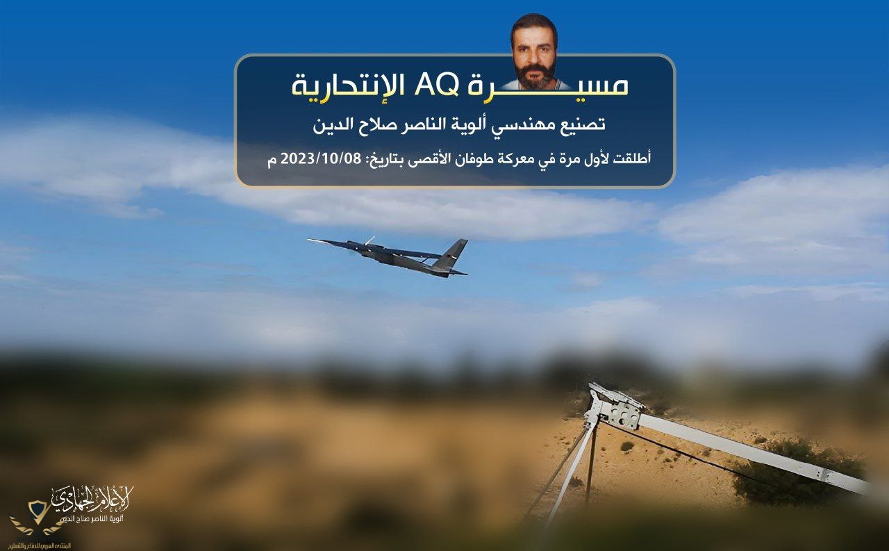 ألوية الناصر صلاح الدين: المسيرات التي استخدمت لضرب اهداف حساسة داخل اراضينا المحتلة هي مسيرات تصنيع محلي صنعت بأيدي مهندسينا وتحمل اسم AQ ومن طرازات مختلفة سيتم الكشف عنها لاحقاً..