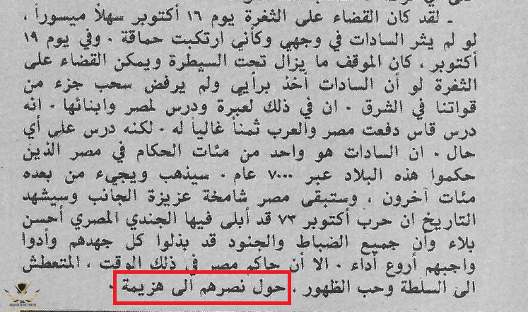 بحضور الرئيس المصري أنور السادات وكان لهذا العرض تأثيرا مذهلا .. ففي اليوم التالي