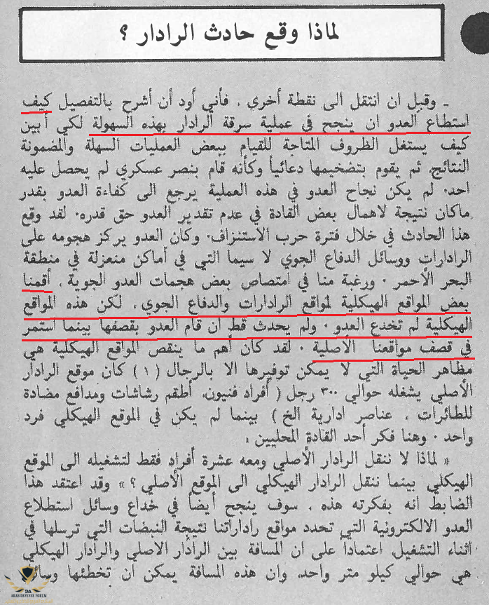 بمناسبة الحديث عن الهياكل الخداعية ومدى نجاحتها في حرب أكتبور "المجيدة" نضع تعليق طريف للشاذلي وقصة سرقة رادار مصري !!!!!!!!!!!!!!!!!!!!!!!!!!!!!!!!!!!!!!!! بالمناسبة، هذه القصة حذفت من نسخة مذكرات الشاذلي المزورة