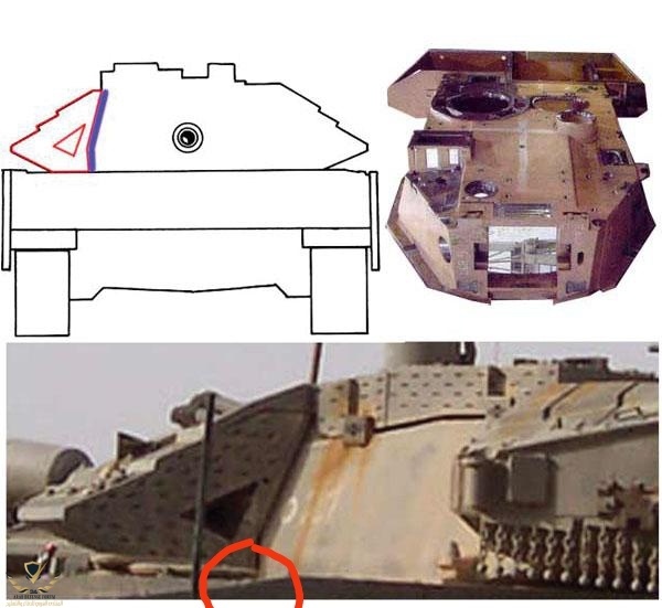 .... او بواسطة درون FPV انتحاري براس مضاد للدروع او pin point ATGM على غرار الماس لمهاجمة هذه المنطقه ولكن بالحالتين تحتاج مشغل محترف بالتحكم ... او تدريب نظام التوجيه للحالتين اعلاه لل AI لمهاجمه هذه المنطقه تحديدا بشكل مائل او افقي ...مستقبلا للدول المبتدئه بالمجال وممكن حاليا للدول المتقدمه.هناك نقطة ضعف كبيرة للمريكافا يمكن للمقاومة استغلالها خاصة عند زرع عبوة العمل الفدائي وهي ان تلصق بين البرج والبدن بحيث تواجه طاقة الانفجار لمنطقة بين بدن الدبابة والبرج حيث لا يوجد اي درع كما في الصورة. مشاهدة المرفق 689249