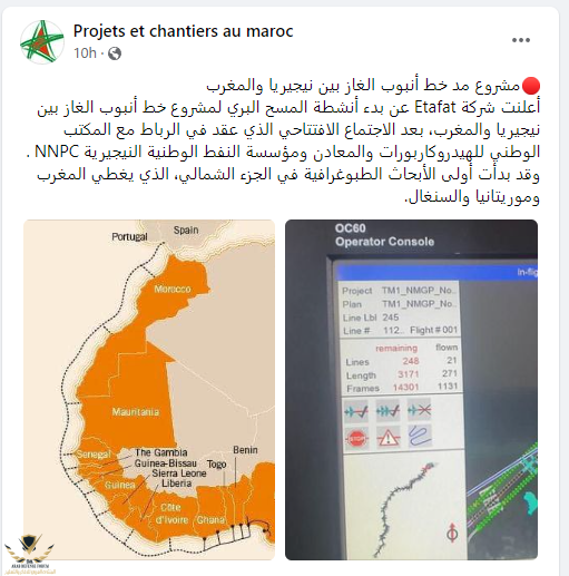 صور نشرتها الشركة المغربية ETAFAT لبدء المسح الجوي لتحديد مسار الأنبوب