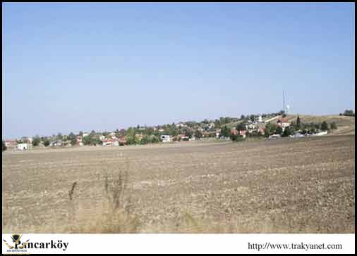 التل الذي قدمت الطائرة من خلفه ويبدو السهل الذي كان يتجمع فيه الجنود بجوار قرية Babaeski