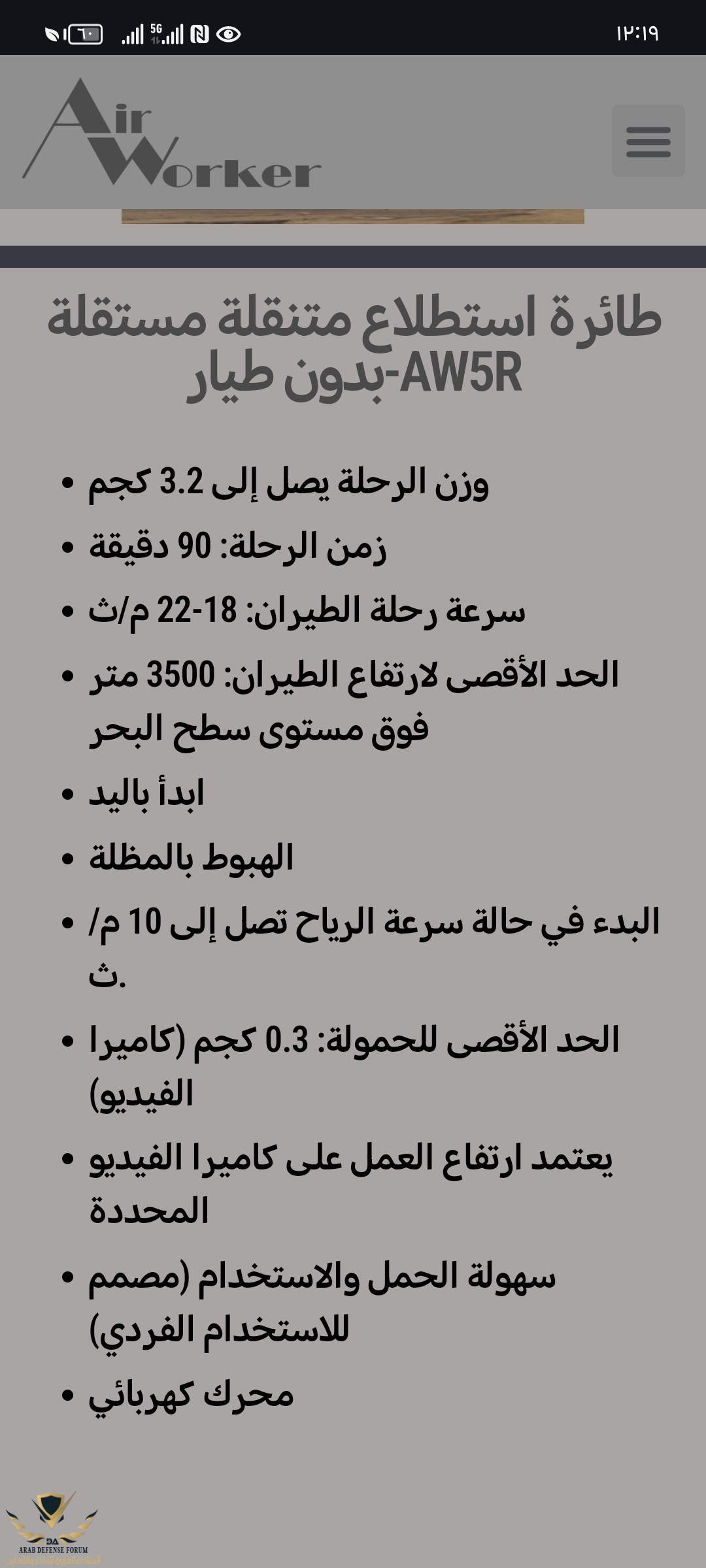 بالإضافة إلى ذلك، قدمت الشركة طائرتها الاستطلاعية بدون طيار AW5R