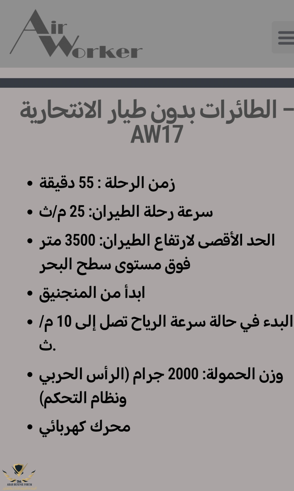 و طائرة AW17 الانتحارية