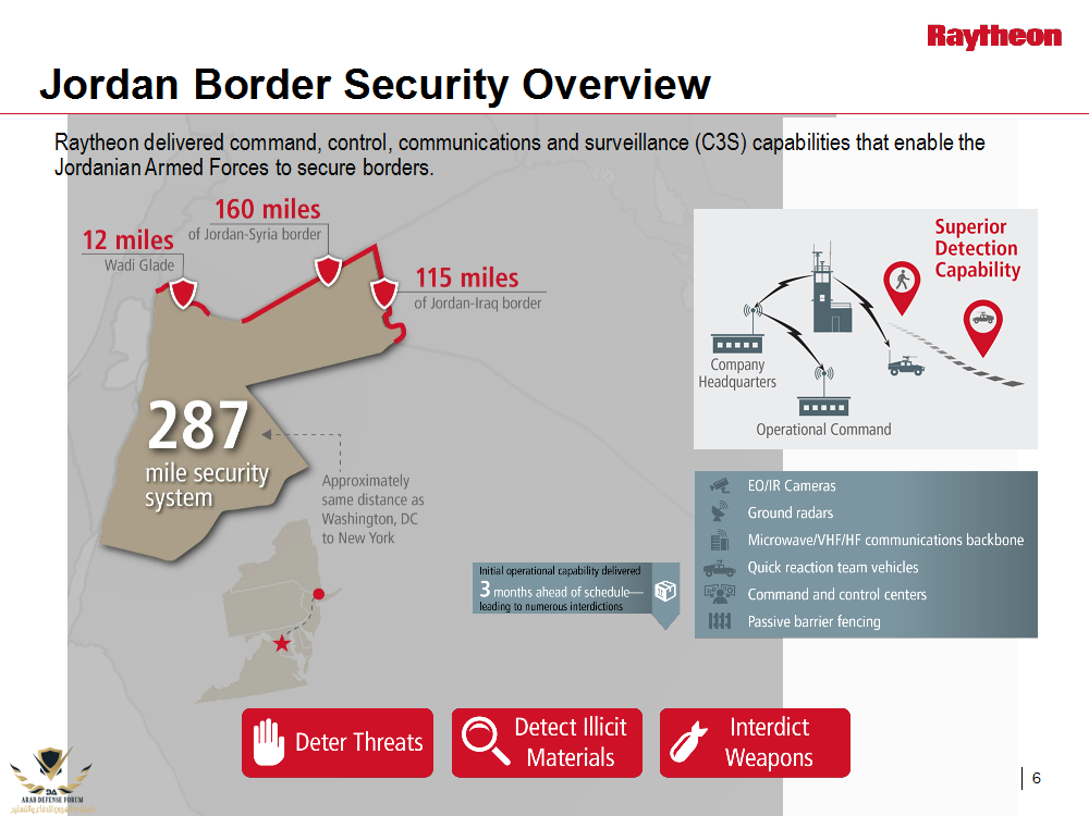 في السياق ذاته عزز الجيش الأردني منظومة حرس الحدود الإلكترونية التي تضم كاميرات مراقبة ليلية ونهارية تعمل ضمن أجواء الضباب الكثيف الذي يستغله المهربون، فضلاً عن تعزيز الإسناد الجوي وأجهزة الرصد الراداري.