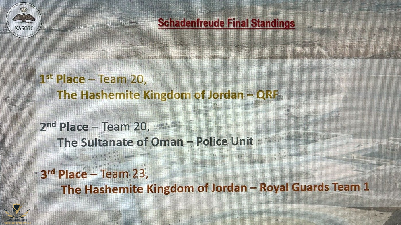 هكذا فعاليات يفترق بوحدات المغاوير والوحدات المظلية أن تتقدم بها .. لكن الفريق الوحيد من هذا الصنف الذي حصل مركزاً متقدماً هو الـ QRF الأردني .. بينما التالي كان الشرطة الخاصة العمانية وكانت هذه النتيجة مبهرة لي جداً ما شاء الله تبارك الله.