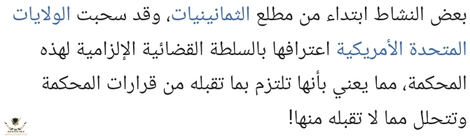 بخصوص أنه يجب أن تكون معترفا بهذه المحكمه لتصبح قرارها ملزما