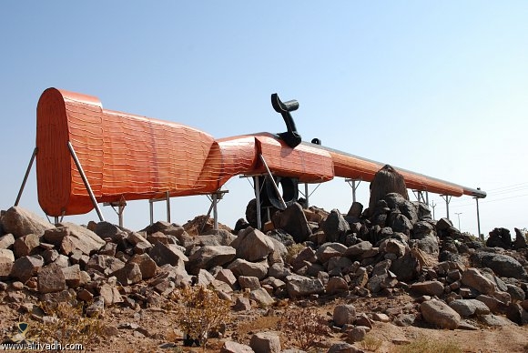 عبارة عن مجسم ضخم لبندقية متواجدة في قرية الرويضة على طريق الرياض مكة