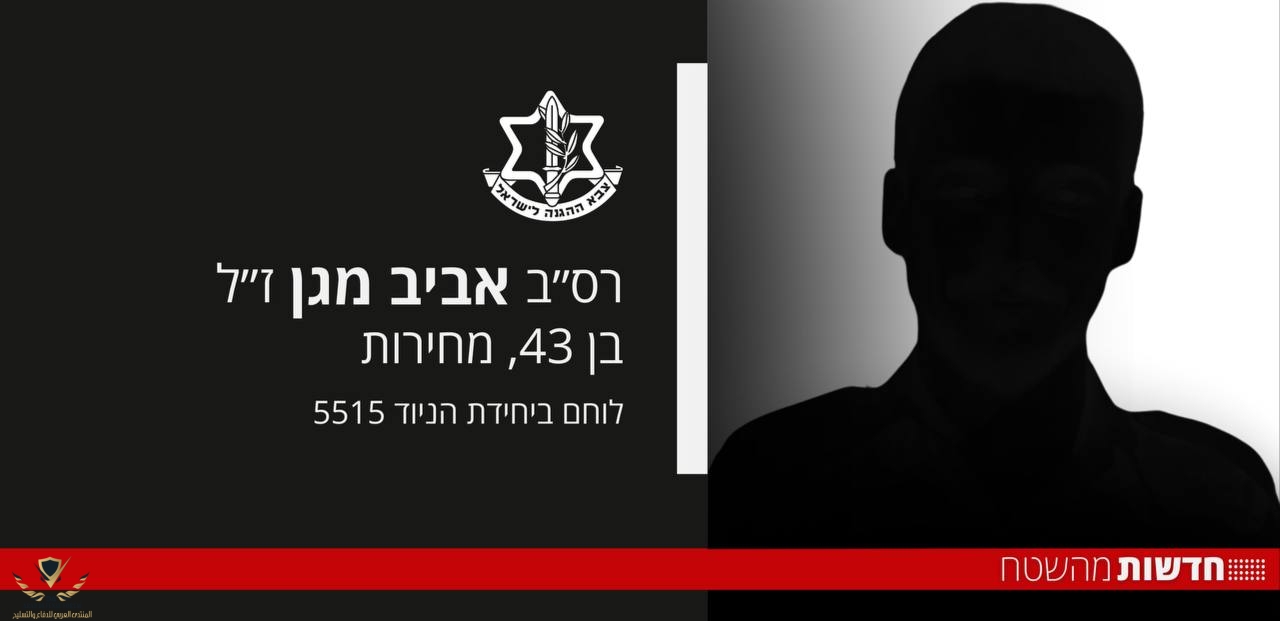 الرقيب أول (مستدعى احتياط) أفيف ماجين يبلغ من العمر 43 سنة , مقاتل في الوحدة المتنقلة 5515 والتي تتشكل من خبراء بمهام مختلطة (اسنادية/قتالية) , قتل أفيف في القاطع الغربي خلال محاولات الفرقة 98 لتنفيذ اختراقات برية اتجاه مواقع لبنانية